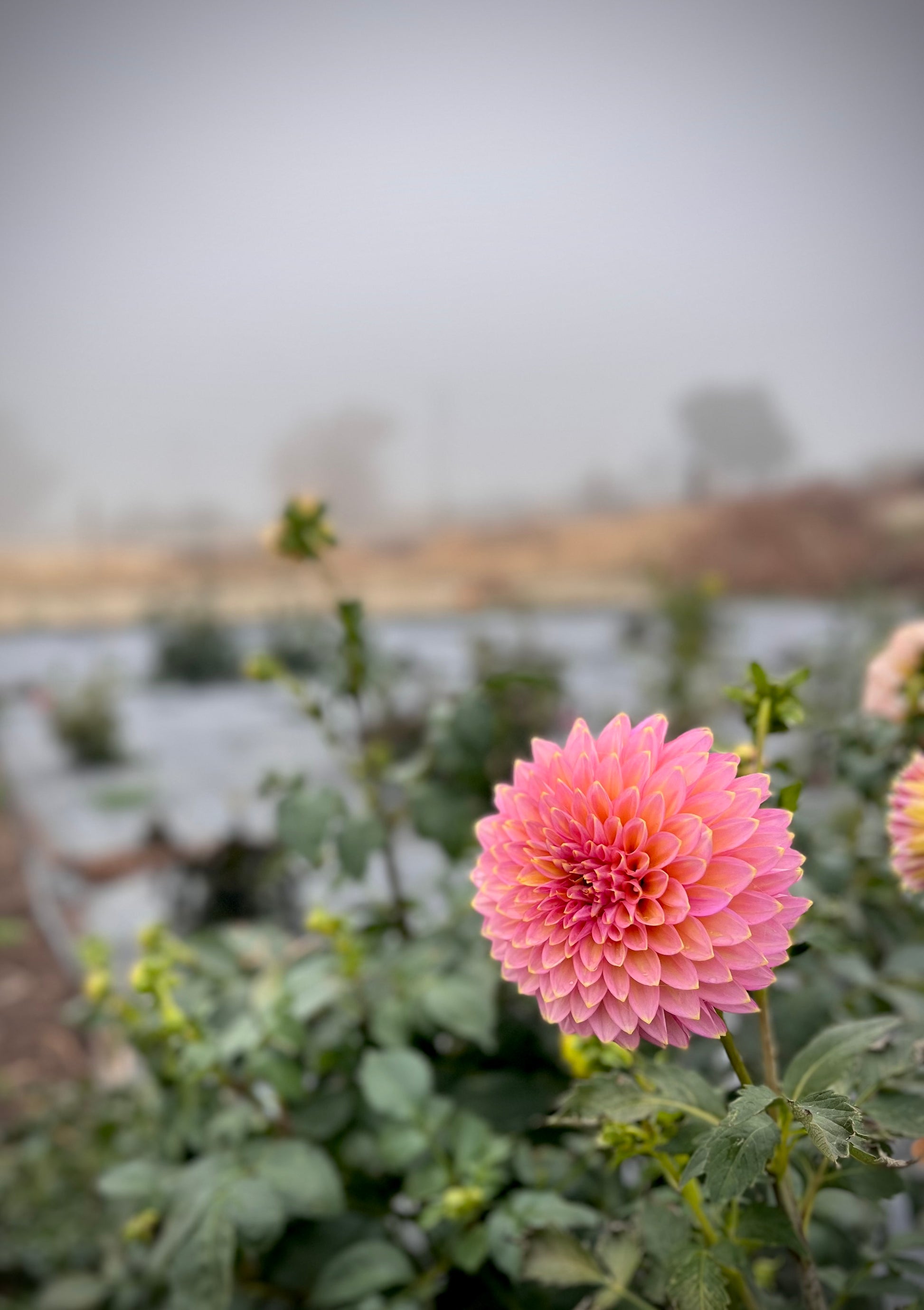 One of my favorites, Bloomquist Mojo has raspberry and watermelon-red blooms with golden tips. It is a generous bloomer and tuber producer and stands 4-5 feet tall.