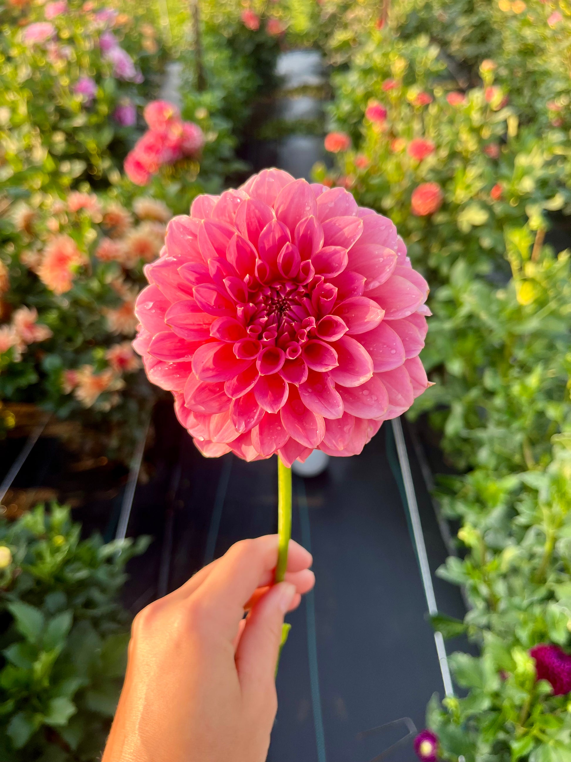 This formal decorative dahlia is vibrant and the perfect shade of “guava pink.” The blooms are 4 inches and the plant stands around 4 feet tall. In my experience it produces to most perfect, by-the-book, easy to divide tuber clumps.