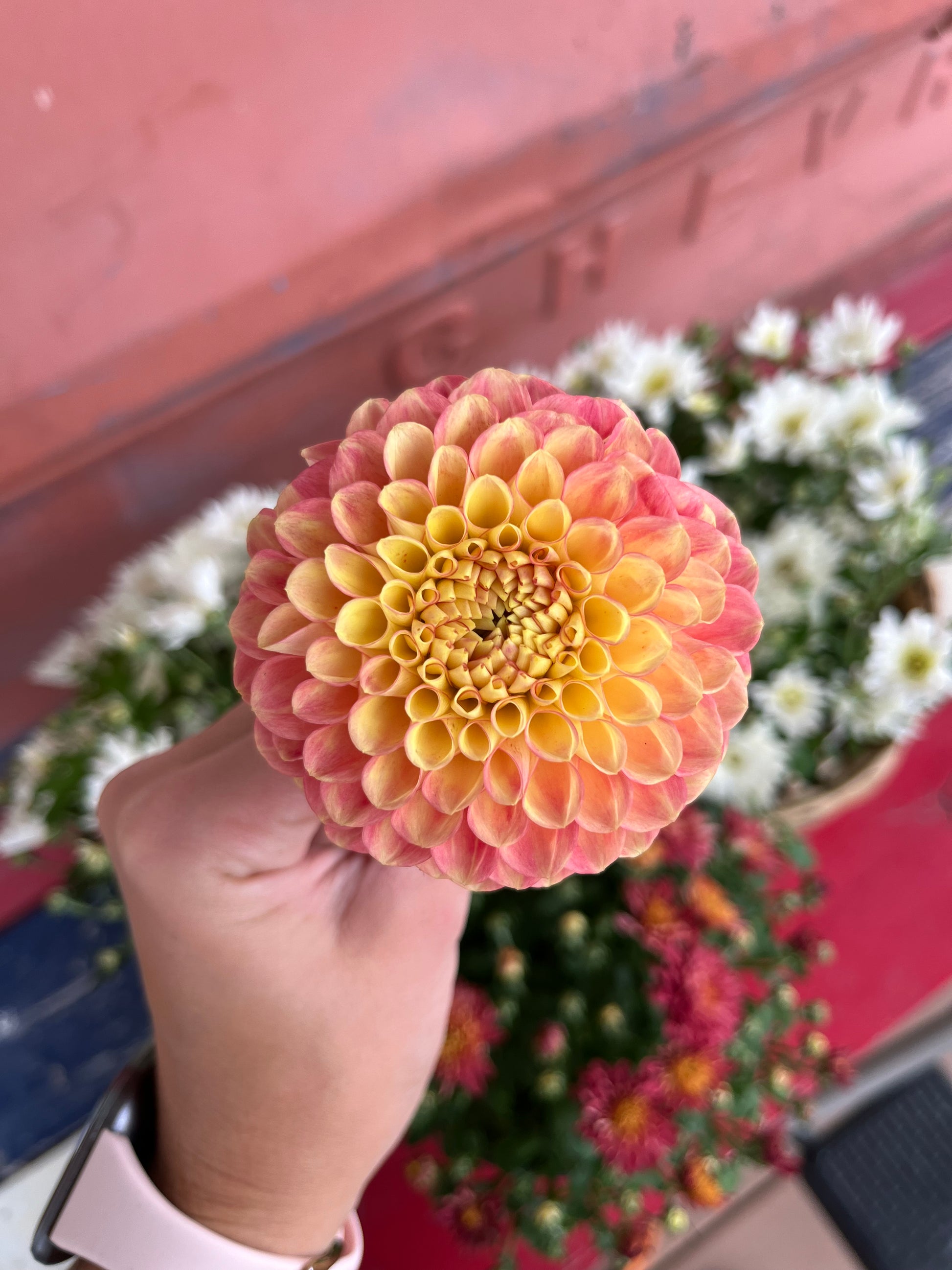 This ball dahlia will make you smile! It features 3-4 inch blooms with an ombré of sunset hues. This variety grows 4-5 feet in height.